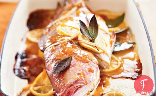 Cały prażony Lucjan cytrynowy z polewą cytrynowo-morelową