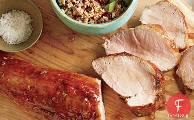 Umieścić patelnię w piekarniku; piec w temperaturze 350 przez 18 minut lub aż termometr zarejestruje 145, obracając i fastrygując pozostałą marmoladą po 10 minutach.