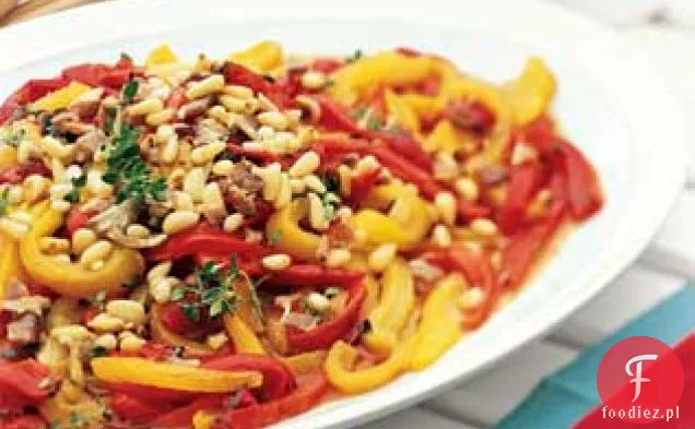 Sałatka z pieczonej czerwonej papryki z sosem Boczkowym i orzeszkami piniowymi