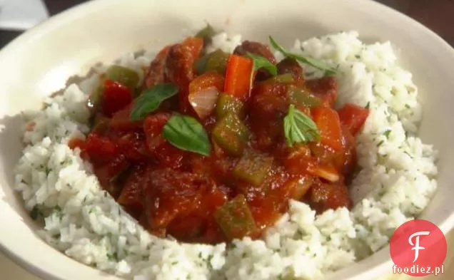Dodaj kilka liści podartej bazylii. Dopraw solą i pieprzem. Dusić kilka minut, aby połączyć smaki, a następnie ostudzić i przechowywać na gotowy posiłek. Podgrzej na średnim ogniu.