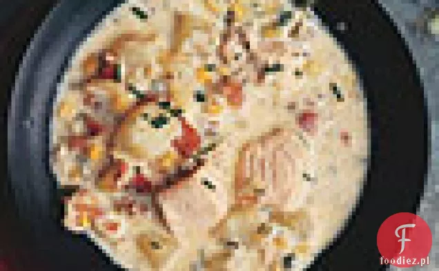 Wylać wszystko, ale 2 łyżki tłuszczu z garnka, następnie gotować szalotki, kukurydza, czosnek, tymianek, liść laurowy, i czerwone płatki pieprzu w tłuszczu w garnku na umiarkowanie małym ogniu, mieszając od czasu do czasu, aż szalotki są miękkie, o 5 protokół.
